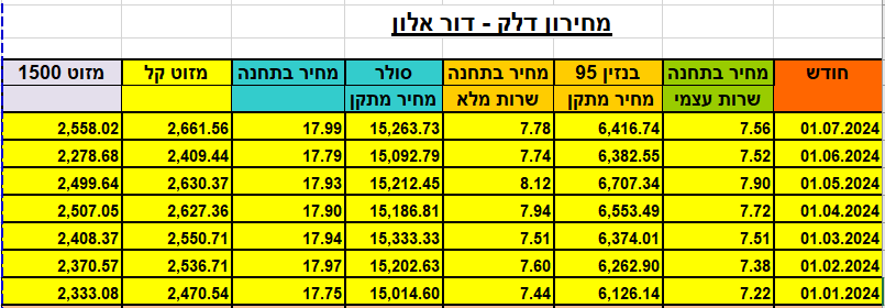 עדכון מחיר הדלק - יולי 2024mishkeydan30 ביוני 2024זמן קריאה 1 דקותעודכן: 5 באוג׳ 2024מחירון הדלק מ2005 בקישור: idcuneydelek2024.xlsהורידו את XLS • 74KBלפרטים נוספים תמיר ארז לשירותך